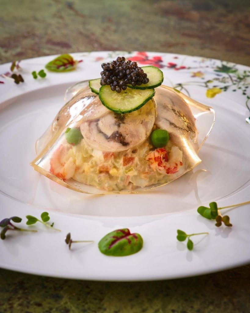 Проводник в мир русской кухни – бренд-шеф ресторана Влад Пискунов – вдохновляется стариной, называет конец XIX века «Вelle Epoque русской гастрономии» и всегда в запасе держит интересную историю про какое-нибудь блюдо, так что, если он вдруг появится около твоего столика, отвлекись от смартфона и готовься слушать (а лучше сразу забронируй столик на его знаменитый «Московский обед» с историческим меню и рассказами). Здесь оливье по классике с раками и перепелами, пирожки, как из детства, чай из самовара 1883 года.