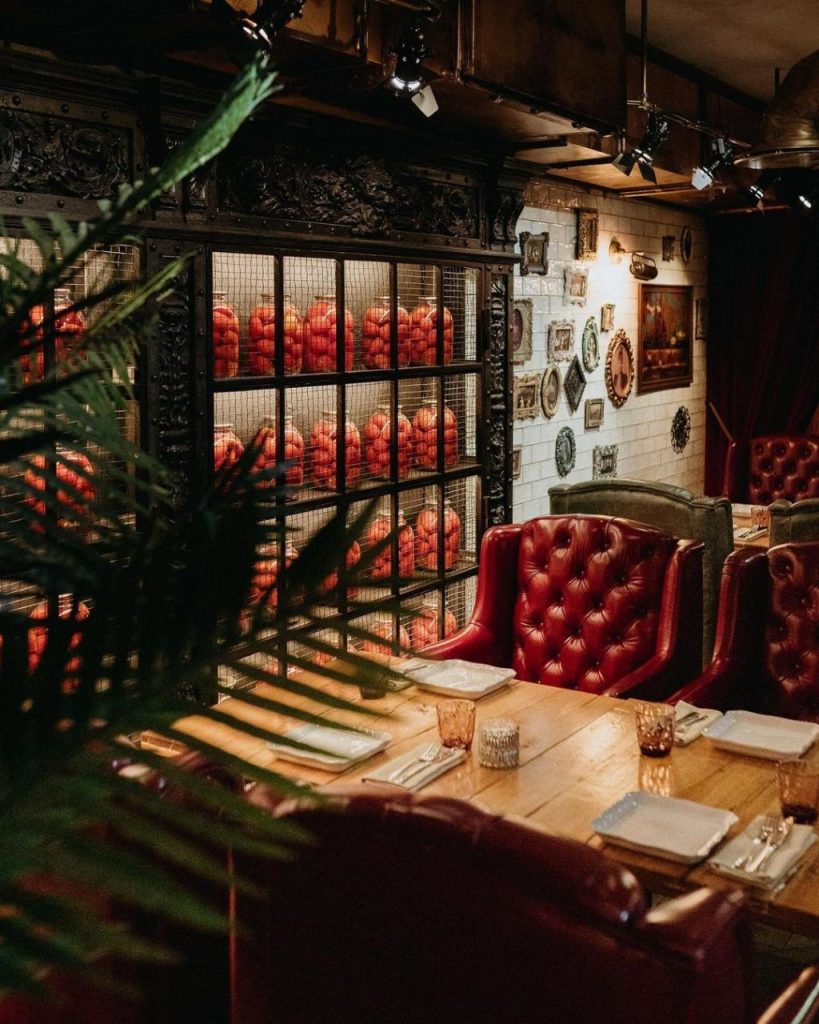 Сложно с уверенностью назвать «Л.Е.С.» рестораном русской кухни, но это место со стопроцентно русской душой шеф-повара и гастроботаника Андрея Колодяжного. Он воссоздал здесь собственную чащу леса, в которую можно попасть, сделав буквально шаг с Тверского бульвара. Все атрибуты леса присутствуют – от растений до звуков природы в туалете.