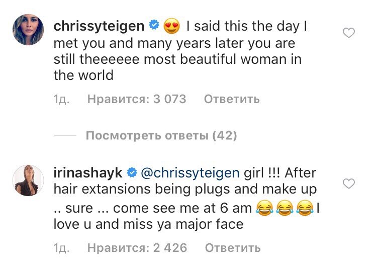 «Я говорила это в день нашей первой встречи. И спустя годы ты по-прежнему остаешься самой красивой женщиной в мире», — написала Крисси.