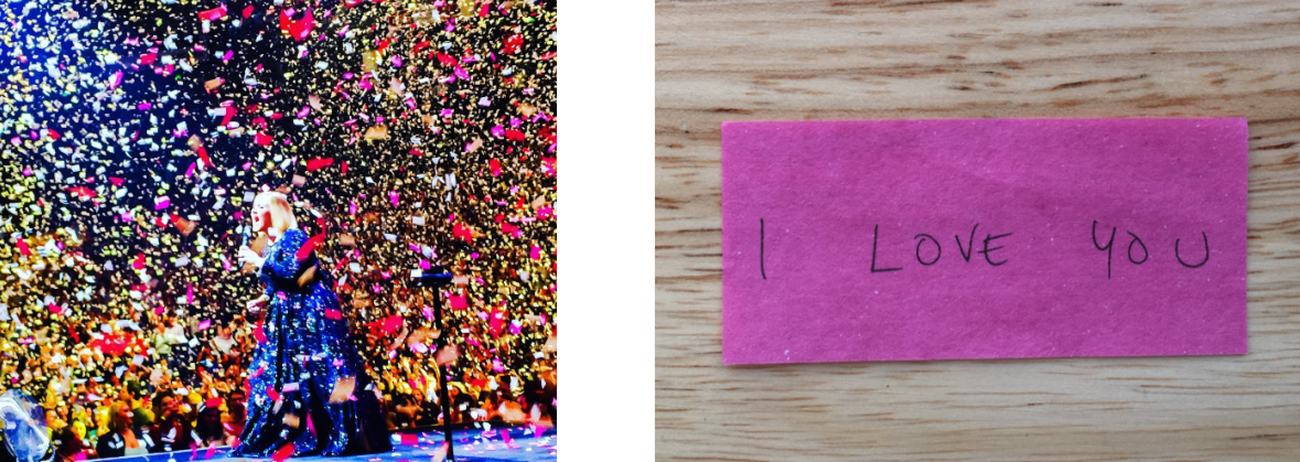 Во время выступления супруги в тот день он осыпал любимую миллионом разноцветных бумажек с признаниями в любви. И все это прямо на сцене!