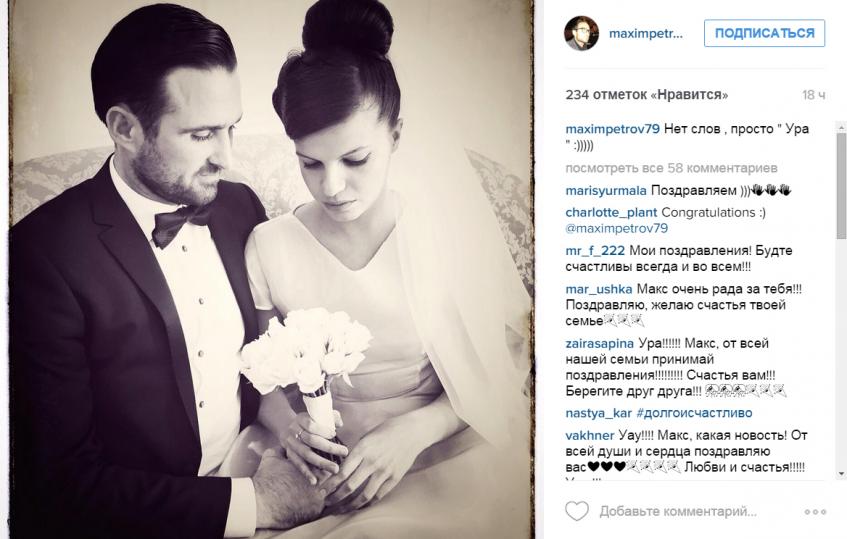 О важном событии через Instagram рассказали сами молодожены, однако Максим оказался более откровенным, так как опубликовал фотографию, на которой он и его невеста запечатлены в костюме и свадебном платье. «Нет слов, просто «Ура»», — написал актер.