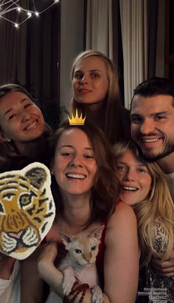 Среди небольшой компании гостей оказались Александра Ревенко, Анастасия Баранова, Мария Ивакова и ее возлюбленный Кирилл Гурбанов.