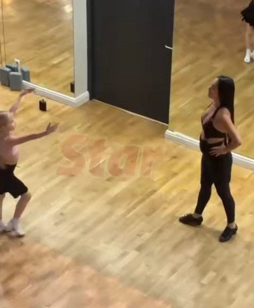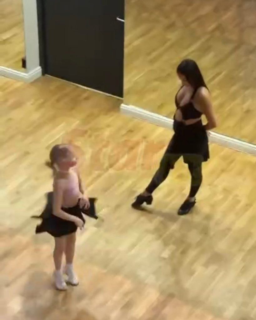На видео Вера занимается с ученицей в танцевальной студии. Обтягивающий спортивный костюм не скрывает округлившийся живот. Несмотря на активную работу в положении, будущая мама выглядит бодрой и счастливой.