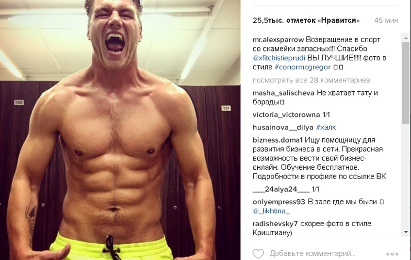 В Instagram Алексей опубликовал фото с голым торсом из раздевалки спортзала. «Возвращение в спорт со скамейки запасных!!!» — написал он. В общем, актер решил перестать искать себе идеальную девушку, устраивать личную жизнь и бросать время на ветер. Теперь, как мы поняли, только качалка, только хардкор. Впереди новые роли, новые победы, а значит нужно выглядеть на все сто! Над чем Алексей сейчас и работает.