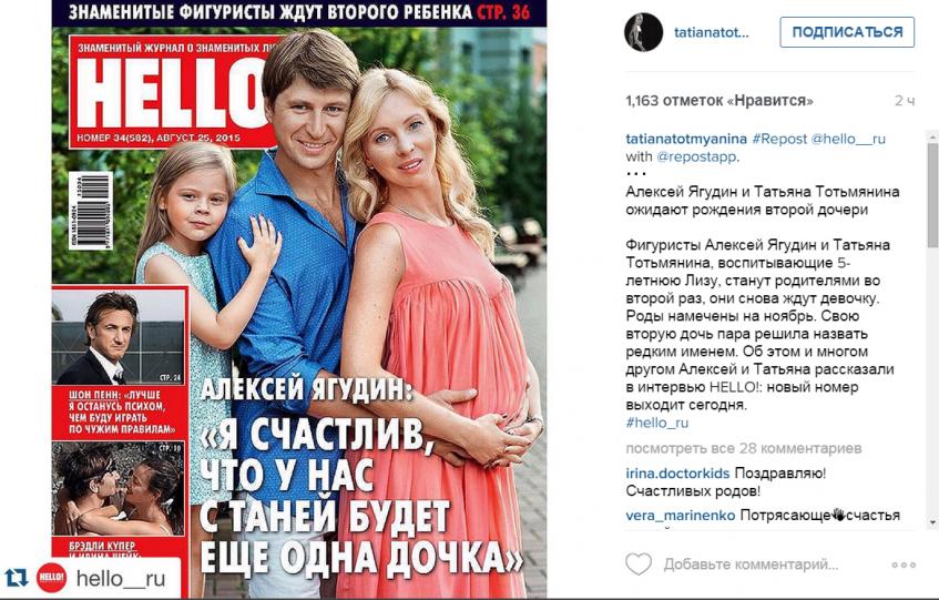 Прекрасные новости! Алексей Ягудин (35) и Татьяна Тотьмянина (33) ждут второго ребенка! Об этом пара рассказала в недавнем интервью журналу HELLO!.