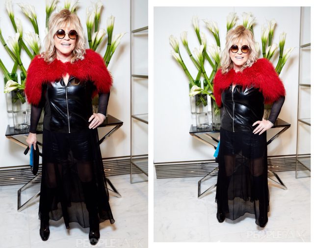 Для выхода Пугачева выбрала чёрную прозрачную юбку, кожаную футболку на молнии и красную меховую накидку.