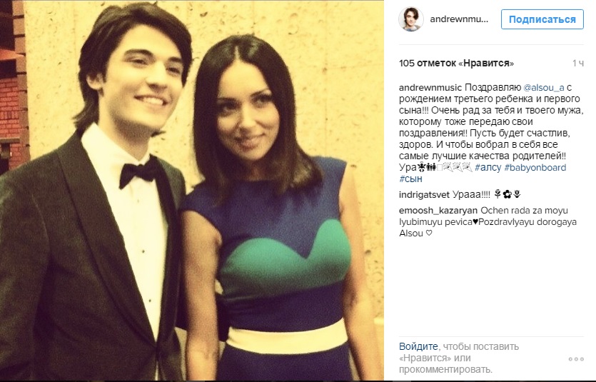 О прибавлении в знаменитом семействе рассказал друг Алсу, артист Андрей Цветков: «Поздравляю с рождением третьего ребенка и первого сына! Очень рад за тебя и твоего мужа, которому тоже передаю свои поздравления! Пусть будет счастлив, здоров. И чтобы вобрал в себя все самые лучшие качества родителей! Ур PEOPLETALK поздравляет Алсу и Яна с появлением на свет сына, а их дочерей Сафину и Микеллу – с рождением братика!