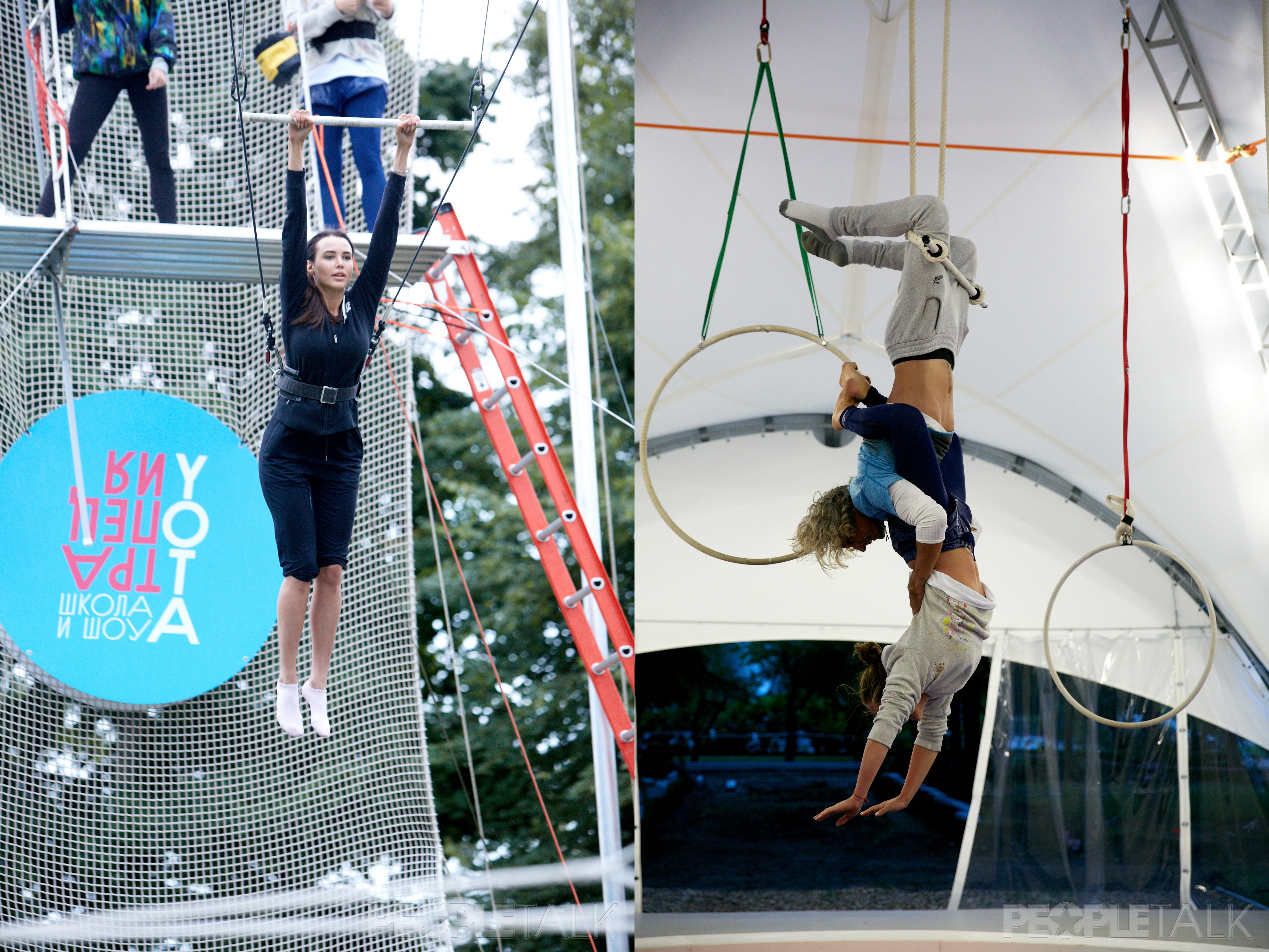 «Трапеция Yota» – это такая масштабная конструкция прямо на набережной рядом с Лужниками. 25-метровая установка, конечно, доверия не внушает, особенно человеку без серьезной физической подготовки. Но в этом и прелесть – трапеция абсолютно безопасна и подходит даже для таких чайников, как мы, которые привыкли сидеть в офисе! Вдобавок ее на себе испытали Яна Валенсия, Анастасия Решетова, Петр Зинкевич и Дарья Вискова.