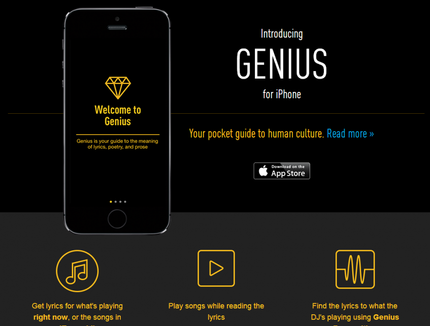 Программа, которая изначально называлась Rap Genius и предназначалась для онлайн-публикации рэп-текстов, была немного модернизирована. Теперь в ней можно увидеть слова почти любой песни.