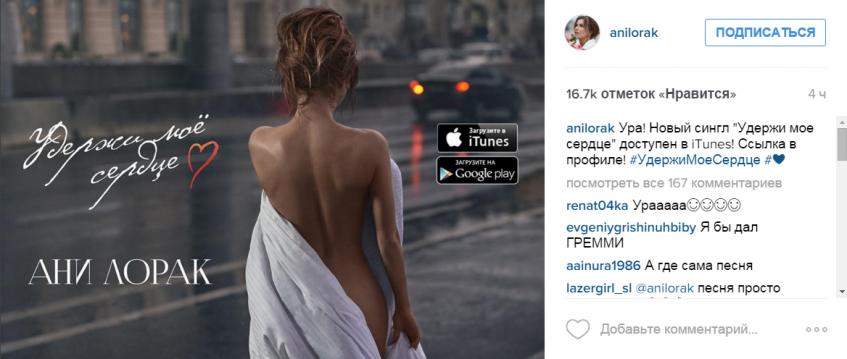 12 января Ани Лорак (37) преподнесла поклонникам замечательный подарок: певица опубликовала новую песню под названием «Удержи мое сердце». О премьере звезда сообщила в своих соцсетях, выложив пикантное фото.