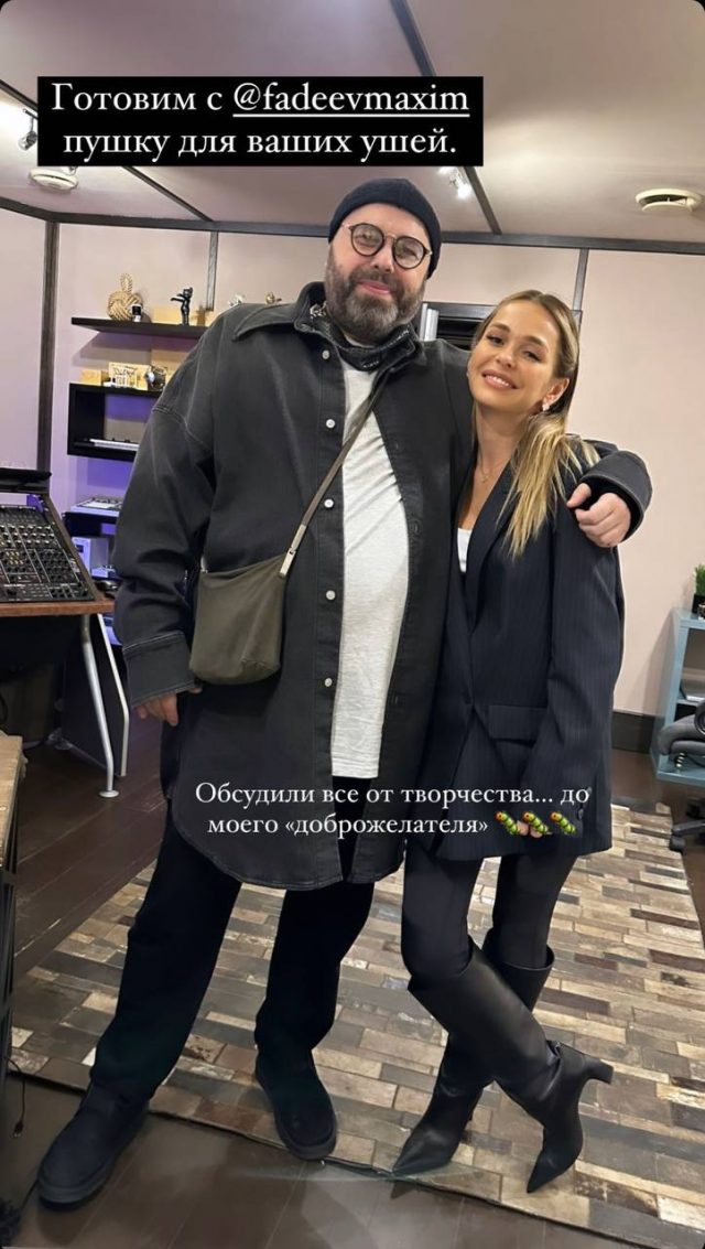 Анна Хилькевич намекнула на предстоящий выпуск своего первого трека. Она поделилась фото в Stories в запрещенной социальной сети с композитором Максимом Фадеевым, на котором звезды стоят в студии звукозаписи. «Готовим пушку для ваших ушей», — подписала снимок девушка. Надеемся, новые уши нам искать не придется…