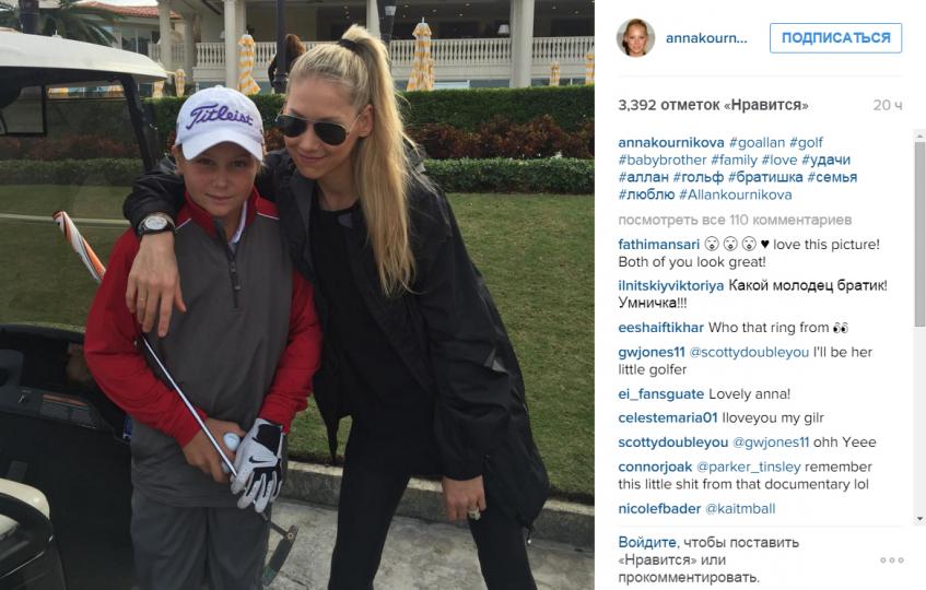19 декабря Анна опубликовала в Instagram несколько фото со своим 11-летним братом Алланом, который выиграл очередной турнир по гольфу. Однако поклонников привлек не только успех юного вундеркинда, но и сама Анна, которая показала обручальное кольцо. На снимках хорошо заметно, что на безымянных пальцах обеих рук девушки красуются два кольца: на правой – простенькое золотое, а на левой – большое кольцо, усыпанное драгоценными камнями.