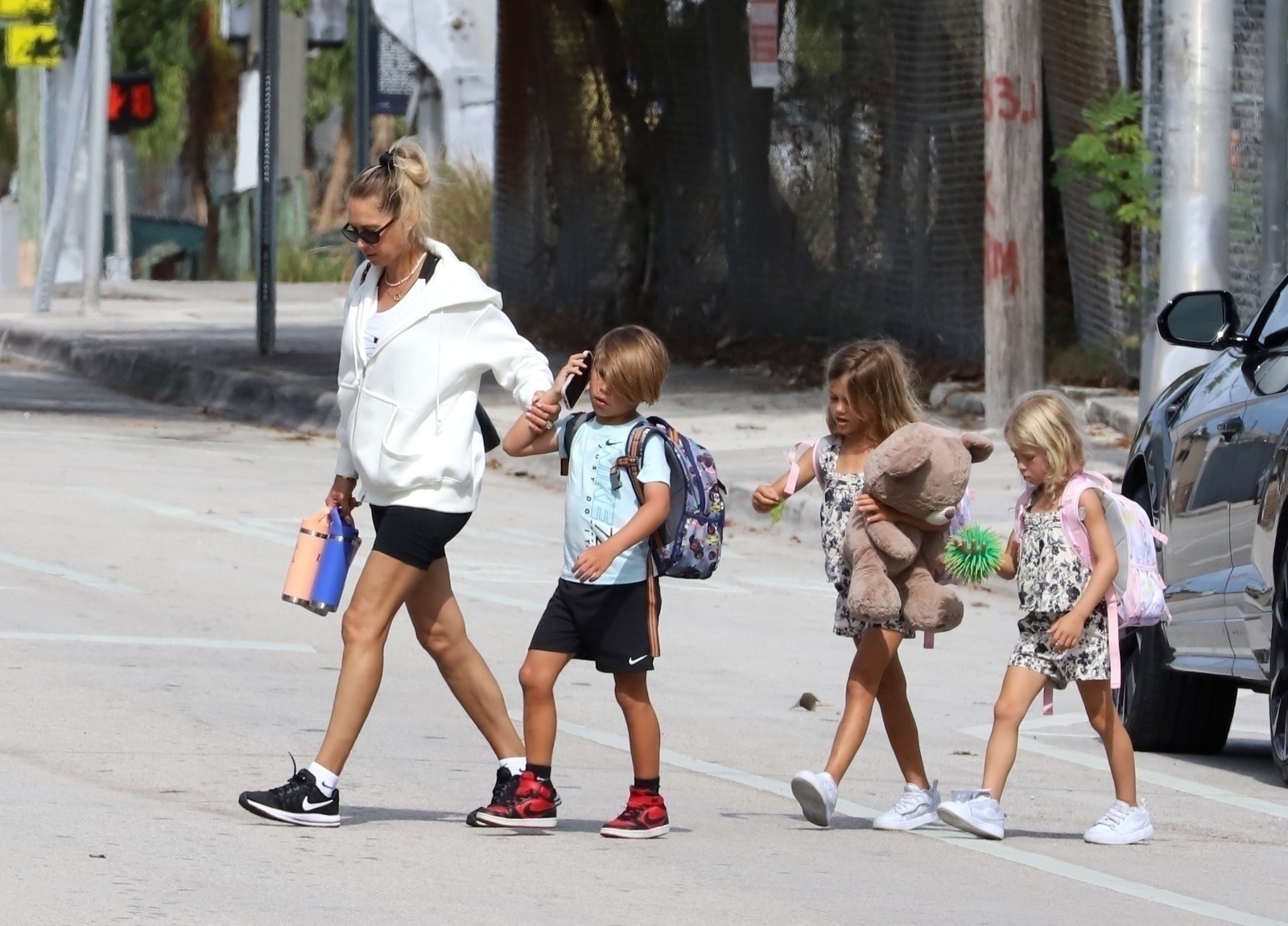 Анна была одета по-спортивному: в объемную толстовку и короткие шорты. На снимках видно, как она держит за руку сына, который что-то внимательно слушал или обсуждал по телефону. Все трое детей тоже выбрали удобные аутфиты для занятий, а дочери и вовсе пришли в одинаковых спортивных костюмах – семья выглядела максимально уютно и гармонично.