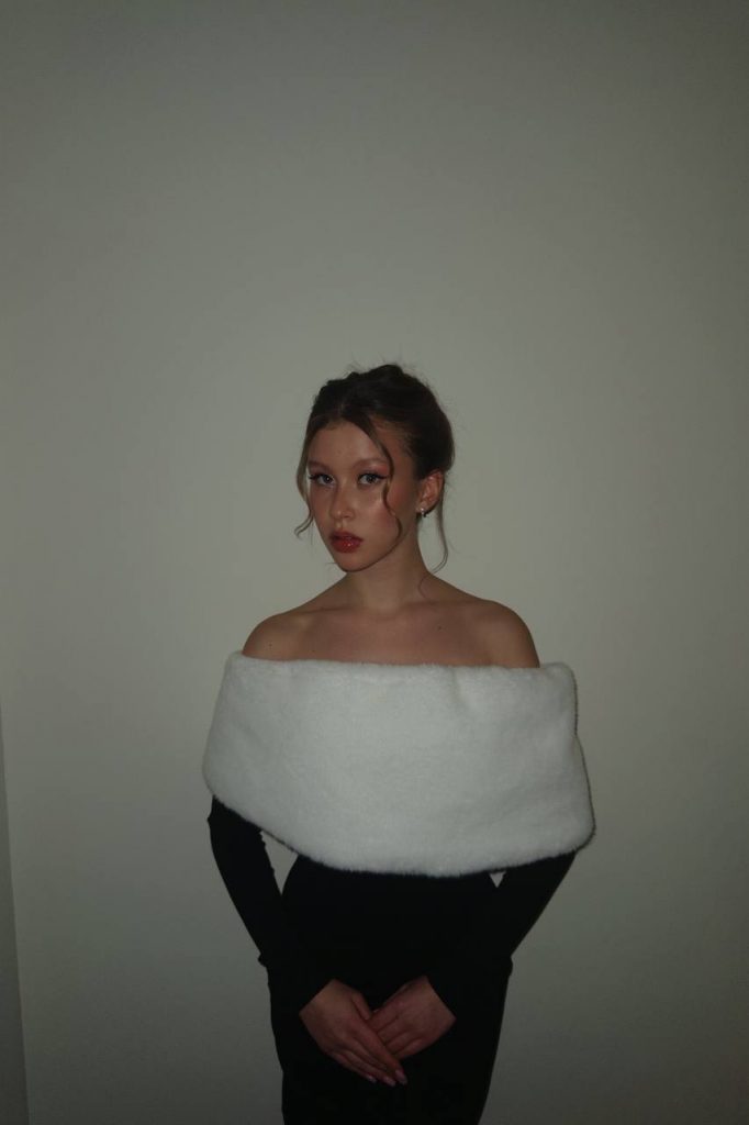 15-летняя девушка в социальных сетях показала свой новогодний образ. Для праздника она выбрала черное обтягивающее платье с белыми меховыми вставками. Наряд дополнили белые туфли с объемными помпонами.