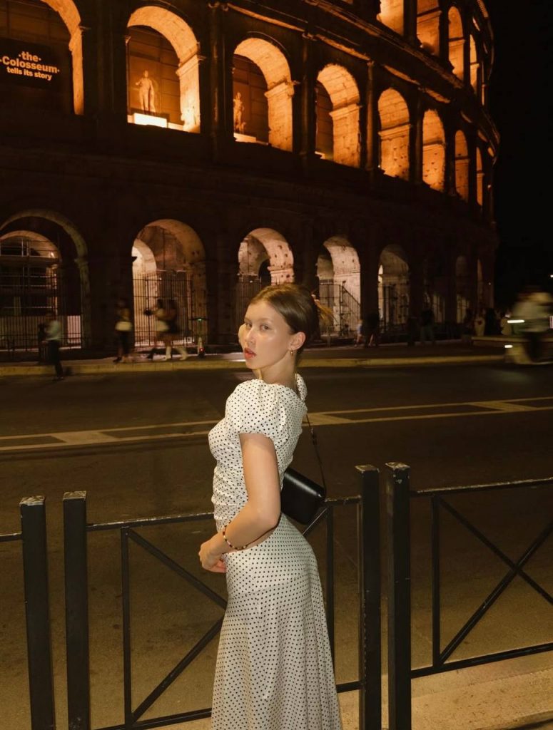 Анна и Юлия Пересильд посетили Рим, Ватикан, Флоренцию и Милан. Юная актриса позирует на фоне красивой итальянской архитектуры. Для прогулок по городу девушка взяла с собой много интересных образов. Модная Анна не игнорирует все самые актуальные тренды последнего сезона. Одним из них, например, стал polka dot, который полюбился многим звездам, в том числе семейству Кардашьян.