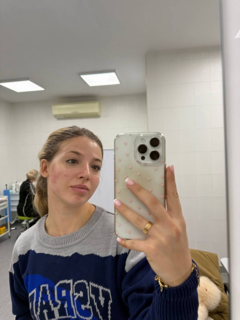 «Это я все еще лечу свое личико… Новых высыпаний больше нет, но постакне приходится убирать. Кололи мезо в ямки. Надеюсь, скоро будет совсем чистое», — призналась Покров.
