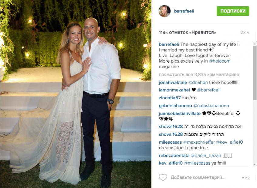 Снимком, на котором Бар запечатлена вместе с супругом, модель опубликовала в своем Instagram. «Самый счастливый день в моей жизни! Я вышла замуж за моего лучшего друга. Жить, смеяться, Любить вместе навсегда», — подписала снимок девушка.