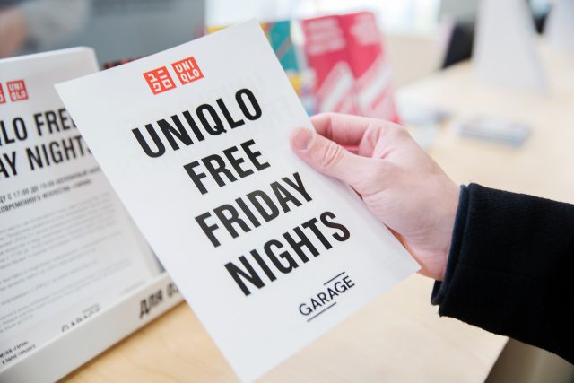 С этого апреля каждую пятницу посетители «Гаража» смогут получить бесплатный билет на выставки Музея с 17:00 до 20:00. А еще в этом году состоится серия образовательных лекций на стыке современного искусства и моды в партнерской лаунж-зоне Музея «Гараж» на третьем этаже магазина «UNIQLO Атриум».