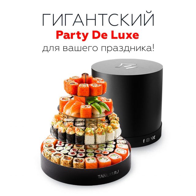 Перекусить с большой компанией друзей обязательно загляни в «Тануки» — в меню у них появился огромный суши-торт: четырехъярусный сет весит около 3 кг и включает в себя 108 роллов и 8 суши! Кстати, все это великолепие можно заказать с доставкой на дом.
