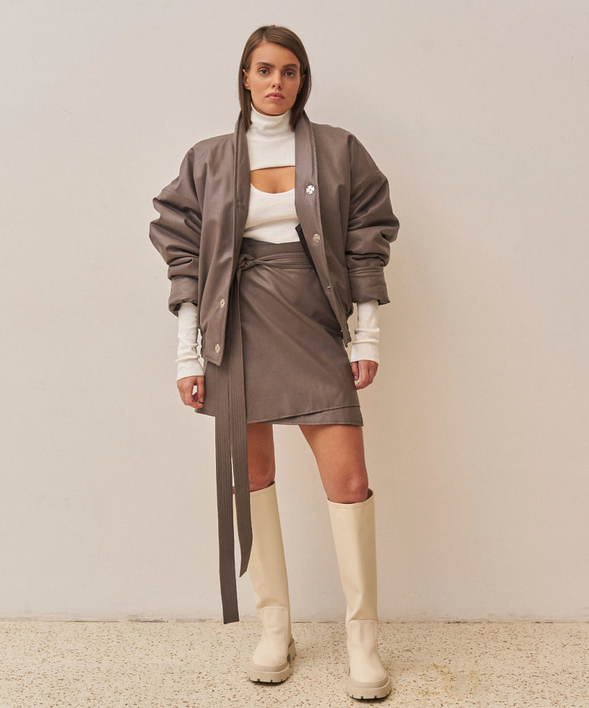 Тренд на кожу буквально захватил модную индустрию. И дело не только в пиджаках, платьях и рубашках. Этой весной мы будем носить и кожаные юбки. Выбирать можно самые разные: от классической миди в черном цвете до вариантов с бахромой или в оливковом цвете, как предлагает 12storeez.