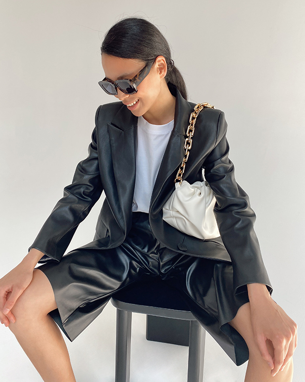 Пиджаки занимают особое место в нашем гардеробе и сердце. Поэтому о них мы расскажем как можно подробнее. Начнем с кожаного. Такие модели появились еще в 2020 году, а 2021-м только закрепили свои позиции. Для базового гардероба в идеале выбирать черные, белые или коричневые модели. Но нам очень нравятся и цветные пиджаки: от синего до салатового.