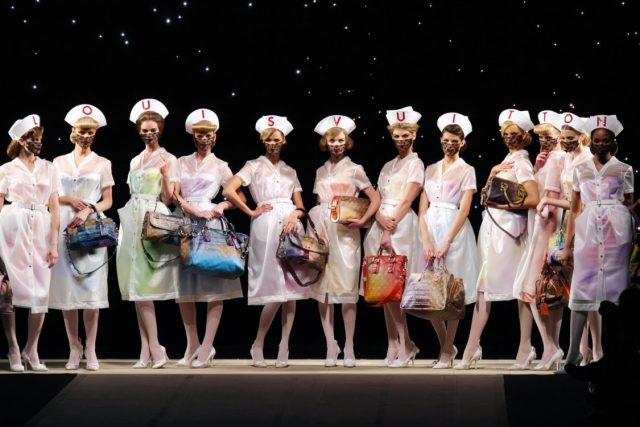 На прошлой неделе модель выгуливала аксессуар несколько раз. И не случайно – оммаж Ричарду Принсу обязывает. Легендарный американский художник прославился благодаря использованию в своих работах рекламных образов и перефотографированию. К примеру, его изображение «Без названия (Ковбой)», которое было позаимствовано из рекламы сигарет – первая «перефотография», проданная на аукционе Christie’s в Нью-Йорке более чем за 1 миллион долларов. И, конечно, куда без упоминания культового показа Louis Vuitton 2008 года с моделями-медсестрами с теми самыми сумками в руках. Отличительная особенность аксессуаров – увековеченные лучшие цитаты фотографа на их лицевой части.