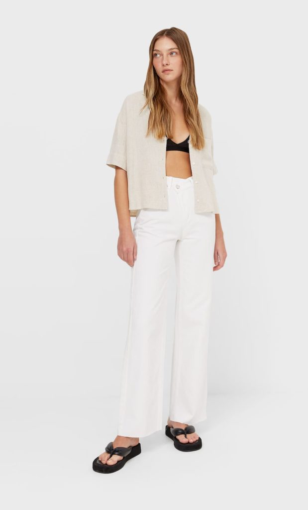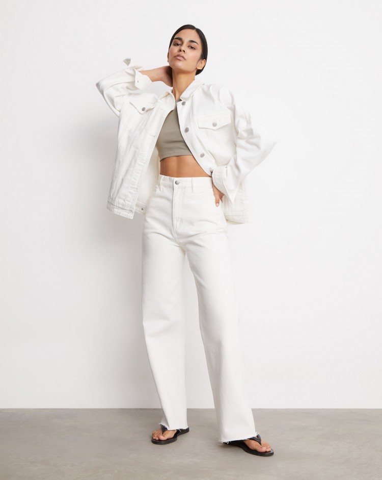 Пока одни fashion-инфлюенсеры эксперементируют с денимом в стиле пэчворк и тай-дай, мы советуем вспомнить про самый универсальный вариант – белые джинсы. Этой весной носи их с ультрамодной рубашкой из эко-кожи, вязаным кроп-топом или университетским бомбером, как у героев американских фильмов.