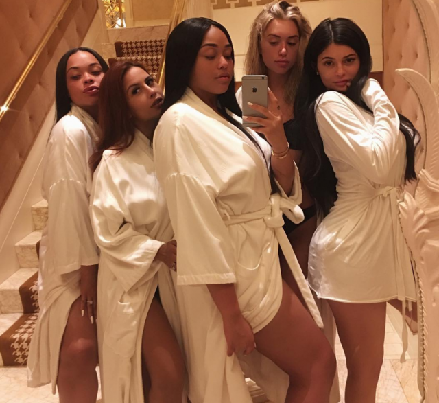 Правда, ролик Дженнер сразу удалила, зато в Instagram появилось ее первое селфи после слухов об интересном положении. На фото Кайли в халате и с подругами. А еще Дженнер теперь редко появляется на людях, а когда выходит, то в свободных футболках.
