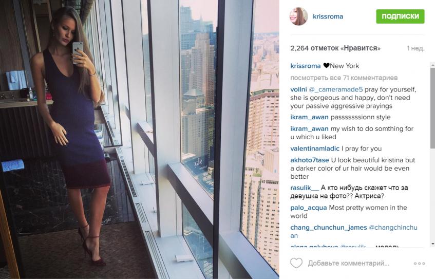 Модель опубликовала снимки, на которых заметны изменения в ее комплекции. Первое фото, на котором Кристина, одетая в обтягивающее платье, стоит на фоне огромных окон, по всей видимости, сделано в Нью-Йорке. Второй снимок был сделан на Ибице.