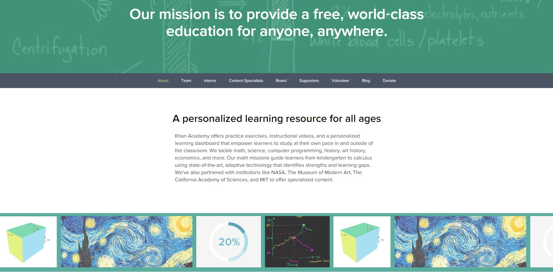 История создания этого сайта очень интересна. Однажды талантливый юноша, окончивший MIT и Гарвард, узнал, что у его маленькой кузины, живущей в другом городе, проблемы с математикой в школе. Он решил ей помочь, выложив видеоуроки по математике на своем канале в YouTube, и мгновенно стал знаменитым. Теперь сайт академии «Кхана» предоставляет бесплатный доступ к коллекции из более чем 4200 микролекций по самым разным темам. Многие доступны и на русском языке.