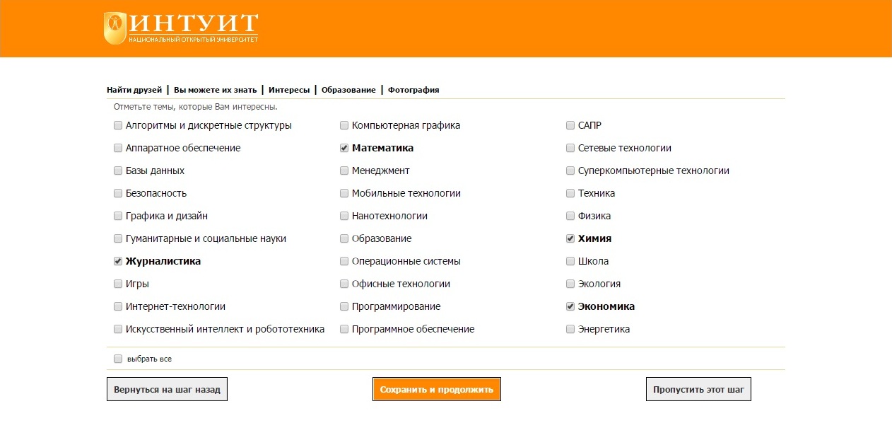 «Интуит» – это крупнейший российский интернет-университет с возможностью получения высшего образования, а также профессиональной переподготовки и повышения квалификации. Отмечу, что полноценное обучение платное, но на страницах сайта ты можешь бесплатно прочитать (или прослушать) более 500 курсов по различным областям знаний: информатике, физике, математике, экономике и философии. Для этого тебе необходимо всего лишь зарегистрироваться на сайте. Далее в разделе «Учеба» ты увидишь перечень курсов, которые можешь прослушать. Список формируется исходя из твоих интересов.