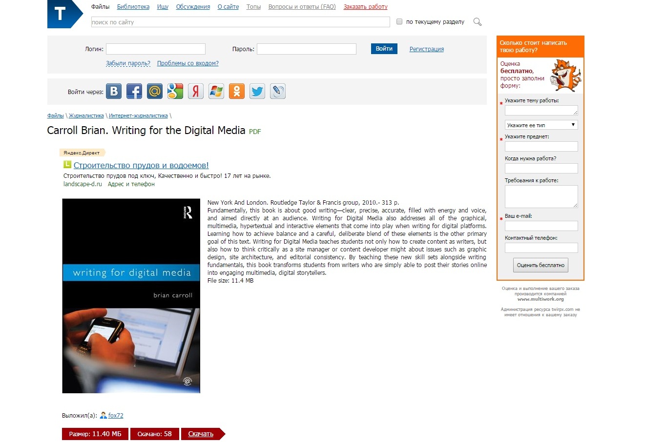 Twirpx − это внушительная база необходимой для учебы литературы. Здесь действительно можно найти довольно редкие экземпляры научных работ как на русском, так и на английском языке. Скачивание доступно за баллы: баллы дарят при регистрации, а потом их можно получить за размещение собственного материала или приобрести за реальные деньги.