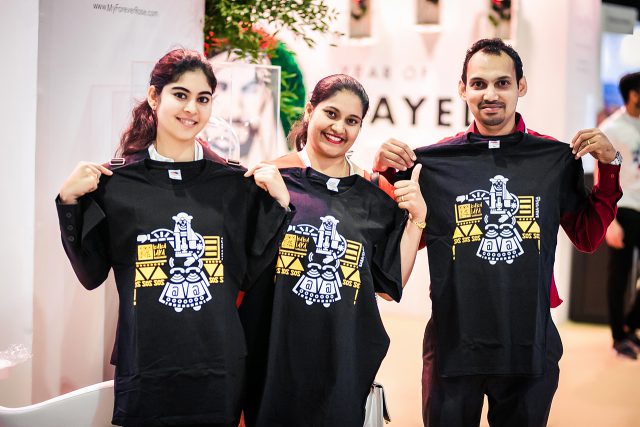 Настоящая Баба Яга не могла пропустить это событие. Прилетела она не без подарков: за участие в социологическом опросе внучки Катя и Волга выдавали «медиафутболки». В уникальный принт такой футболки встроено простое, но изящное технологическое решение. С помощью приложения «Галамагия» каждый участник смог забрать с собой частичку арт — проекта. А тем временем, бесспорно, яркими героями и любимцами публики стали сами артисты, представившие на выставке объединение славянских культур и традиций.