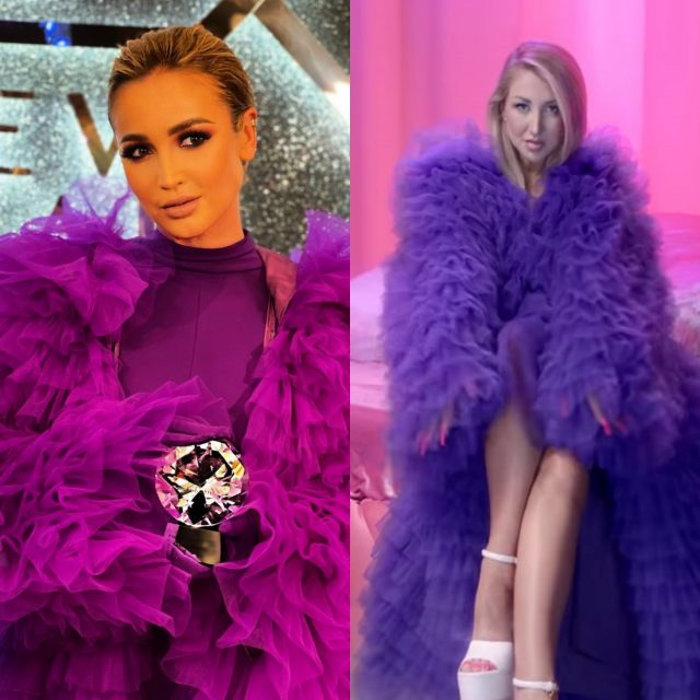 На минувшем мероприятии телеведущая получила награду как самый стильный артист года. Однако пользователи заметили, что она вышла в свет точно в таком же многоярусном платье из фатина цвета фуксии, в котором ранее певица Margo снялась в своем клипе на песню «Эйфория» с Дмитрием Тарасовым. «Ольга наверное хотела, чтобы нас с ней перепутал Дима», — пошутила Марго со сцены.