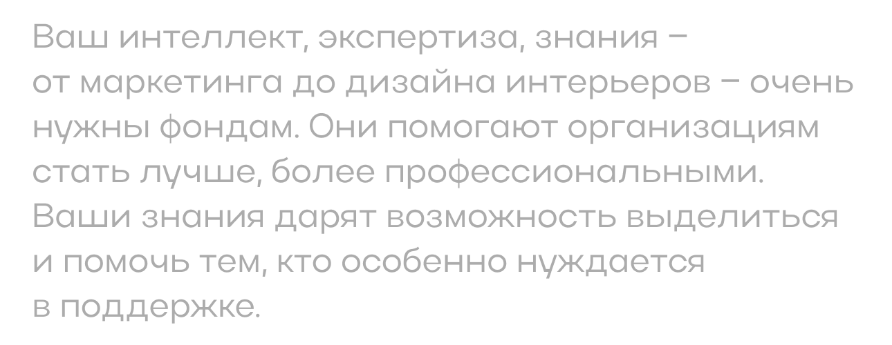 Фонд «Друзья» – пример того, как можно меняться и переосмыслять себя, оставаясь верным своей миссии. Меня это тоже подстегивает меняться, оставаться актуальной и не отставать. Сложно жить в такое время, когда старые правила уже не работают, а новые еще никто не придумал. А вот у «Друзей» это прекрасно получается!