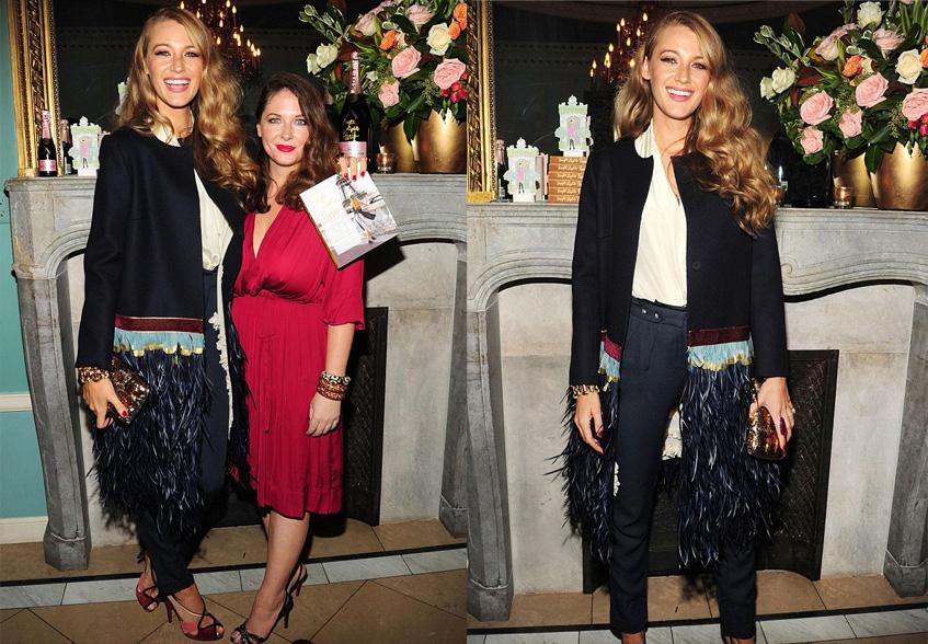 Мероприятие, посвященное выходу нового путеводителя по Парижу, в котором рассказано о самых интересных ресторанах и магазинах города, прошло в одном из уютных заведений Нью-Йорка. Блейк появилась в темных брюках, белой блузке и великолепном пальто от дизайнера Анна Саммароне.