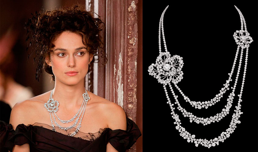 Кира Найтли (30) уже несколько лет носит украшения исключительно от Chanel, поэтому неудивительно, что она лично позвонила ювелирам и попросила разрешения надеть их изделия для фильма, когда ее пригласили сниматься в «Анне Карениной». Ювелиры обрадовались, расщедрились и специально для съемок выпустили коллекцию Chanel Haute Joaillerie, в которую вошли многослойные ожерелья из бриллиантов и жемчуга, серьги и броши. Самый дорогой предмет в коллекции – это колье Camelia Poudre ценой в $2 000 000.