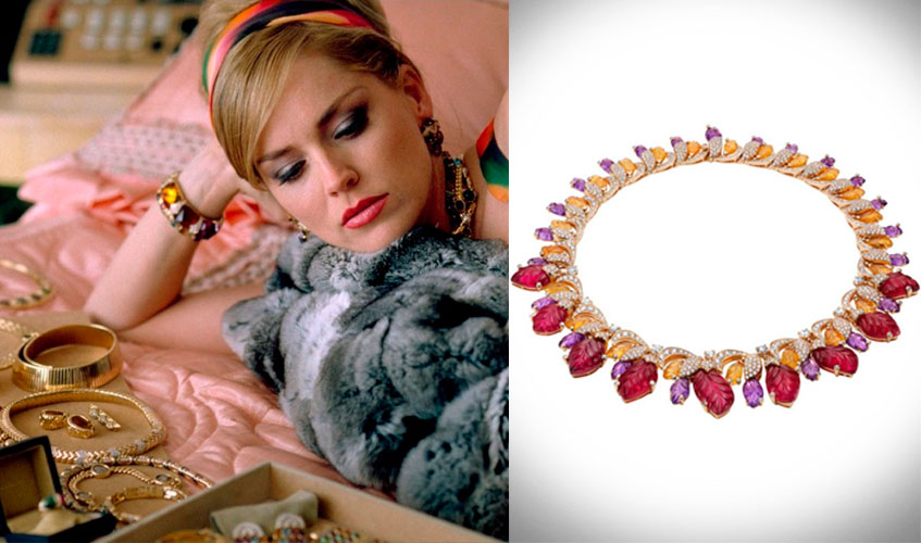 Специально для известного кадра в фильме «Казино», где герой Роберта Де Ниро (72) осыпает свою жену драгоценностями, ювелирный дом Bvlgari создал целую коллекцию украшений. Шэрон Стоун (57) посчастливилось «искупаться» в них. Центральным предметом коллекции стало эффектное колье из серии Four Seasons – Autumn, впоследствии выкупленное актрисой.