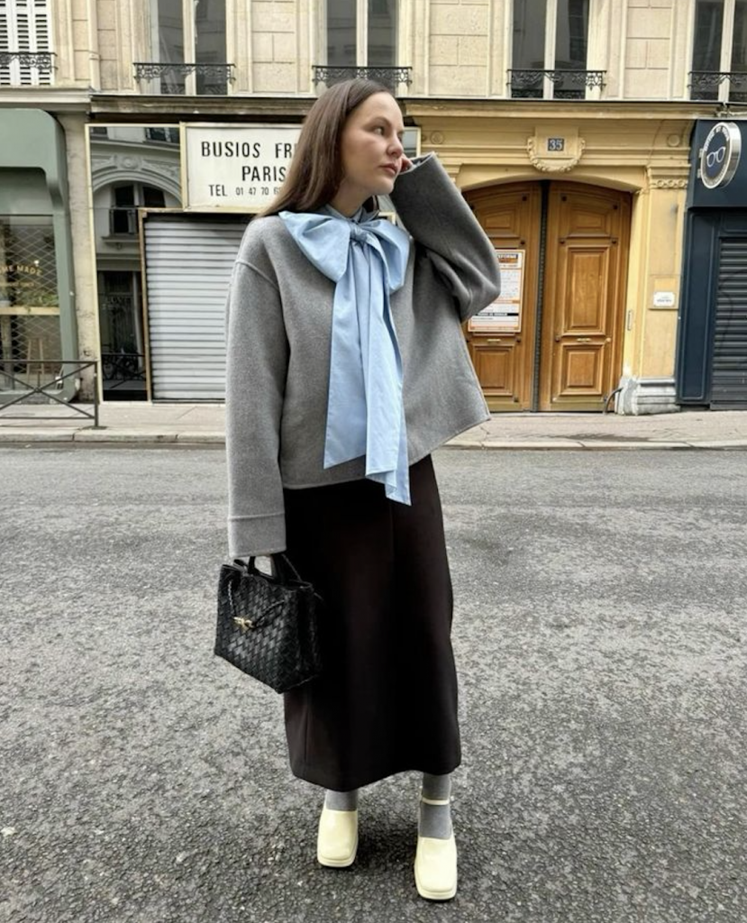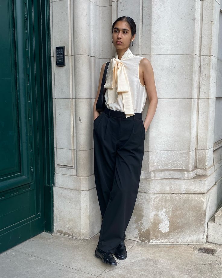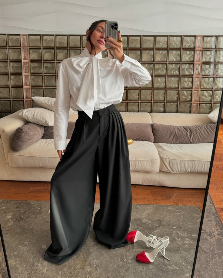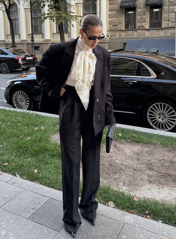 Фэшн-инфлюенсеры, конечно же, не отстают и активно внедряют такие блузы в свои образы. Модники, как и мы, знают – найти идеальную блузу с бантовым воротником – задача не из легких. Поэтому многие выбирают галстуки в тон блузы или рубашки и завязывают их на шее в форме крупного, эффектного банта. Мы собрали для тебя 10 образов, где главным элементом выступает блуза с трендовым акцентом.