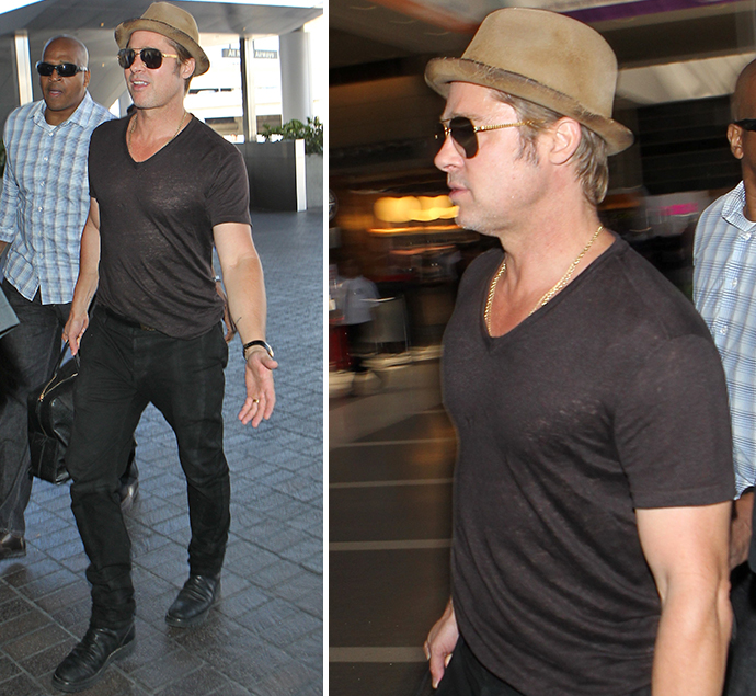 26 июля Брэд был замечен в аэропорту Лос-Анджелеса, где впервые и продемонстрировал изменения. Актер полностью сбрил бороду и изменил прическу. Он с удовольствием позировал папарацци, хвастаясь своими мышцами в обтягивающей футболке.