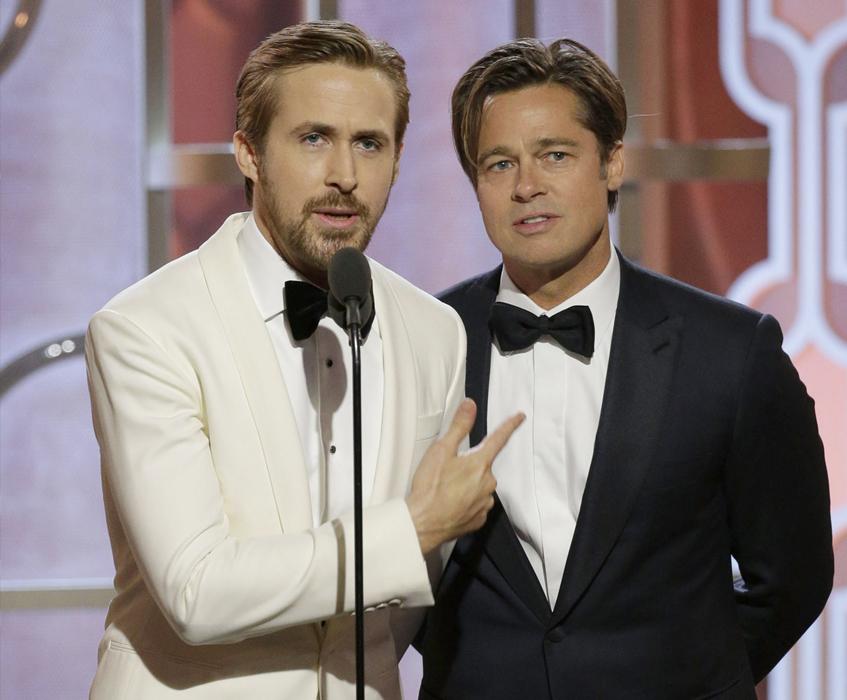 Брэд вышел на сцену в компании Райана Гослинга (35), который неожиданно выглядел старше, чем его коллега. На гладко выбритом лице Брэда не было ни единой глубокой морщинки, а прическа вновь обрела знакомые черты, напоминающие о первых ролях актера.