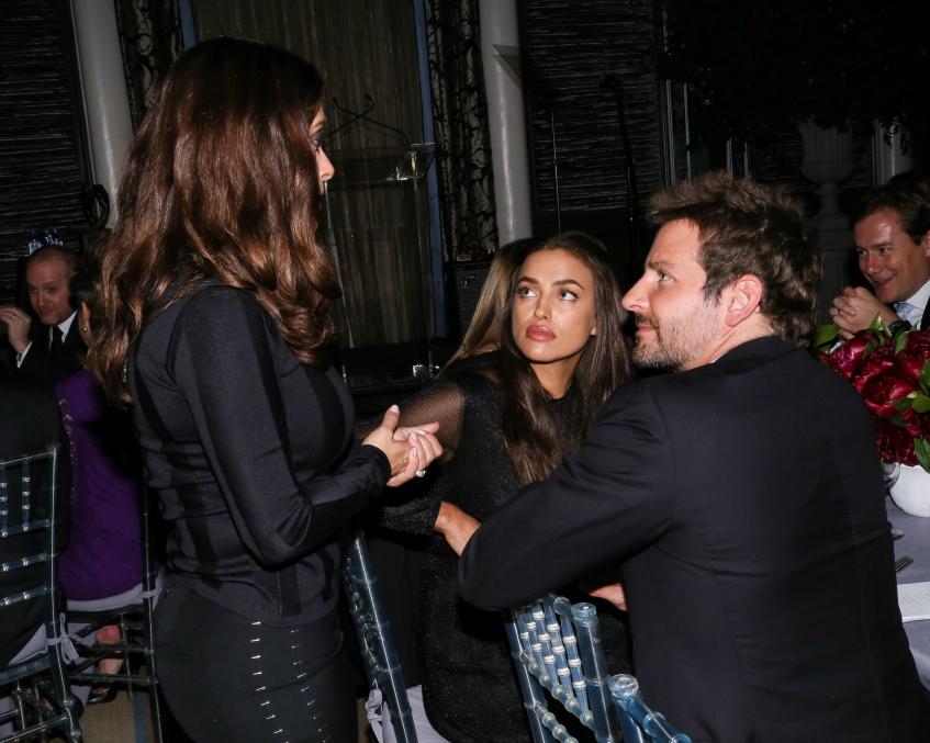 Ирина, появившаяся в черном платье с открытой спиной, и Брэдли, одетый в темный костюм, стали почетными гостями, заняв место за столиком виновника торжества. Несмотря на связывающие их чувства, актер и модель вели себя более чем скромно, изредка позволяя себе обмениваться нежными взглядами.
