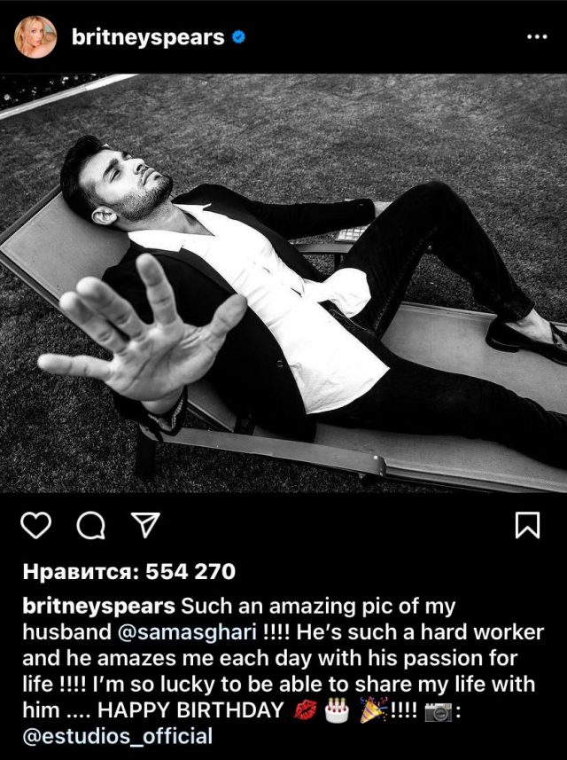 Вчера они праздновали день рождения Сэма, и Бритни трогательно поздравила возлюбленного в своем Instagram. А уже сегодня певица поделилась его снимком и подписала: «Великолепное фото моего мужа». Неужели, они тайно расписались?