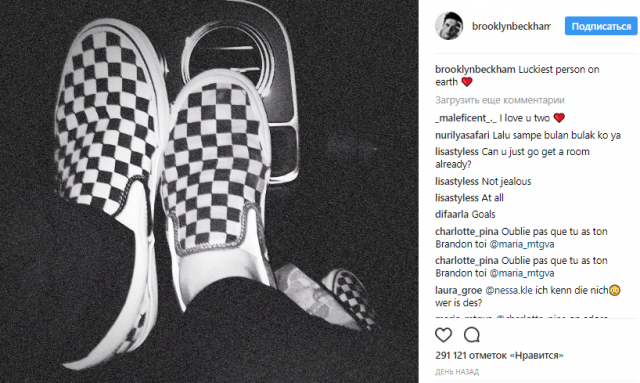 Вчера, например, Брук выставил снимок ног его и Хлои в одинаковых кедах. «Самые счастливые люди на Земле. Люблю до луны и обратно», — подписал фото Бекхэм.