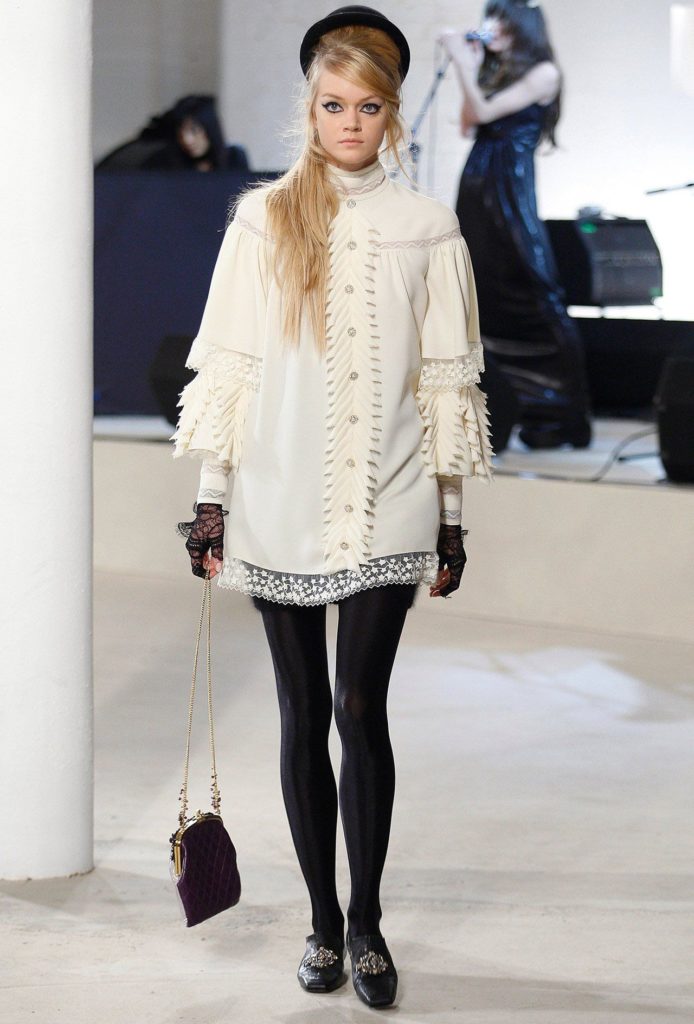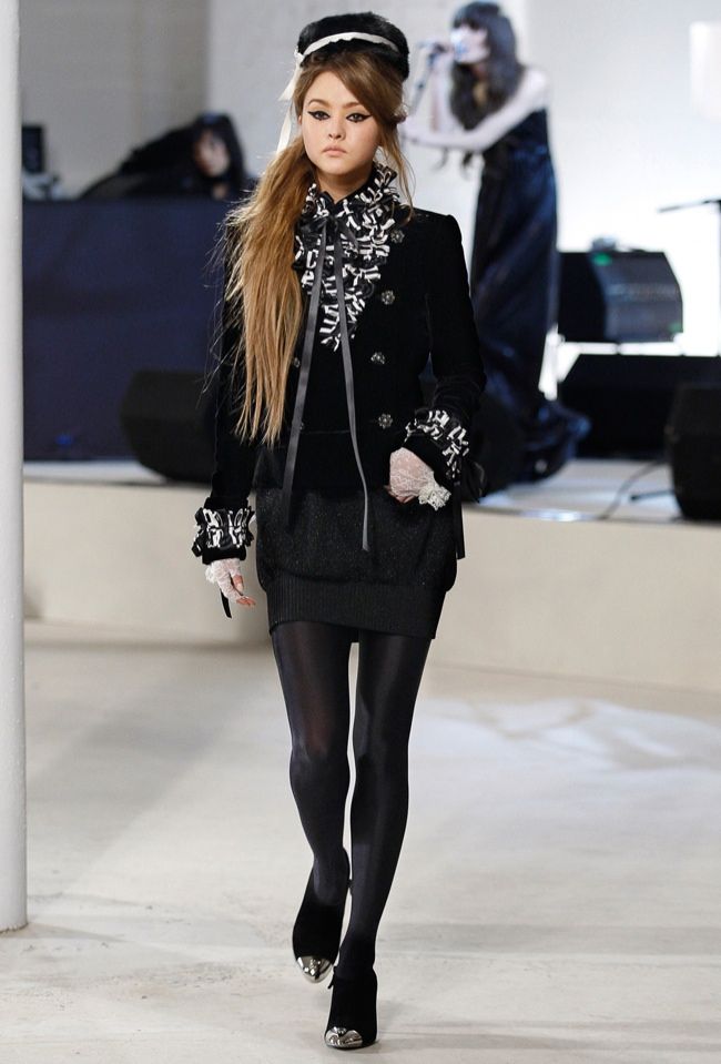 И если прямых цитат стилю певицы не было (в коллекции Лагерфельд делал акцент на сдержанность, вообще не присущую Эми), то объемную прическу и дымчатые стрелки глава Chanel позаимствовал именно у нее.