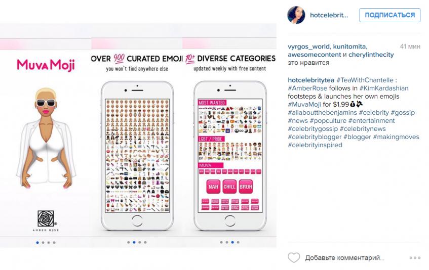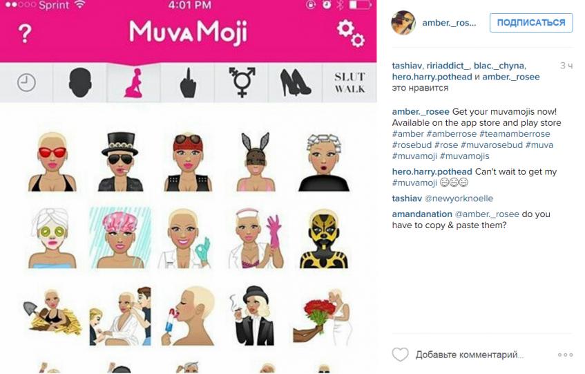 Ты наверняка помнишь, как в конце 2015 года Ким Кардашьян (35) представила миру серию собственных смайликов, которые получили название KIMOJI. А 30 марта бывшая пассия Канье Уэста (38) Эмбер Роуз (32) представила миру свой собственный набор картинок под заголовком MuvaMoji.