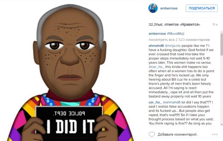 Также досталось и Биллу Косби (78). Среди смайликов Эмбер комик запечатлен с табличкой «я сделал это», что является прямой отсылкой к скандально известному обвинению актера в изнасиловании нескольких десятков женщин.