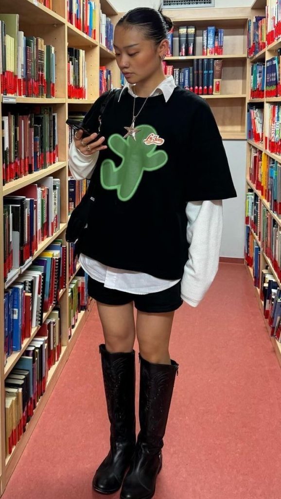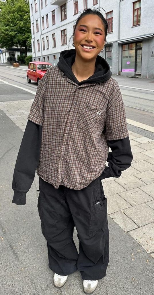 Адепты тренда из TikTok предлагают нам носить комбинезоны из денима, объемные худи на молнии, брюки карго, большие футболки в дуэте с лонгсливами, грубые кольца и подвески на шею. А еще они советуют не забывать про классические кеды, спортивные брюки и сумки кросс-боди. Сам стиль можно описать как своеобразный микс гранжа, эстетики гиков и элементов Y2K. Собрали в нашей галерее образы в духе лузеркор, которые стоит повторить грядущей весной.