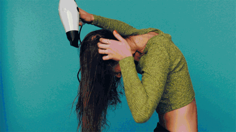 Сушить феном волосы лучше опустив голову вниз. Когда они подсохнут на 80 %, переходи к укладке на расческу.