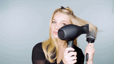 Затем возьми круглую расческу-брашинг, в идеале среднего диаметра (с ней легко можно сделать и кудри, и прямые волосы). Просушивай волосы с оттяжкой на лицо так, чтобы кончик смотрел назад, и делай так по всей голове, кроме затылка (там можно сушить локоны просто вниз).